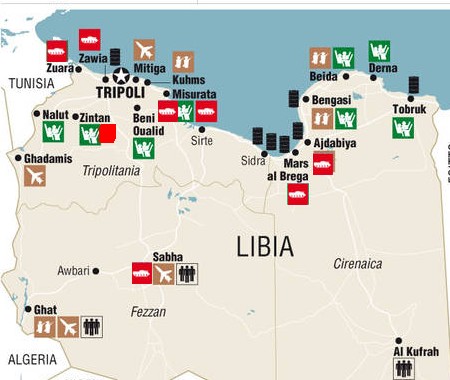 4. Tobruk is no longer in danger of being attacked and its inhabitants massacred. On March 15, this eastern city of 120,000 not far from Egypt, with its major petroleum depot, was in danger of being taken by the forces of Muammar Qaddafi, supported by his air force. There is a good metalled road from Ajdabiya to Tobruk, which Qaddafi’s forces were using. Under ordinary circumstances, Tobruk is a place from which petroleum is exported across the Mediterranean.