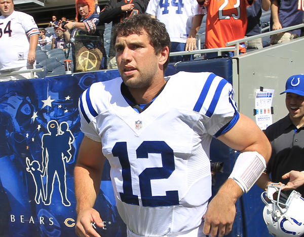 Photo #Luck Andrew Luck jogs on the field for his first NFL regular season game (Mike Fender photo)