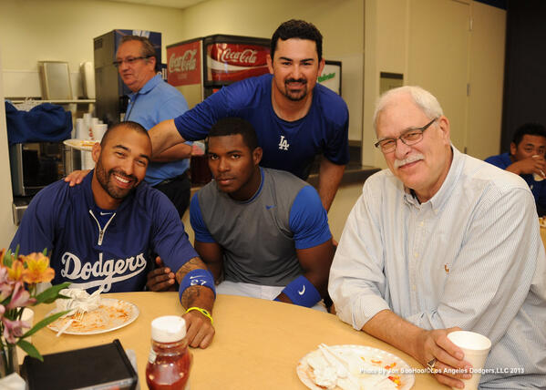 Great pic! “@Dodgers: Phil Jackson, Yasiel Puig and Clydesdales. An epic #Dodgers Photo