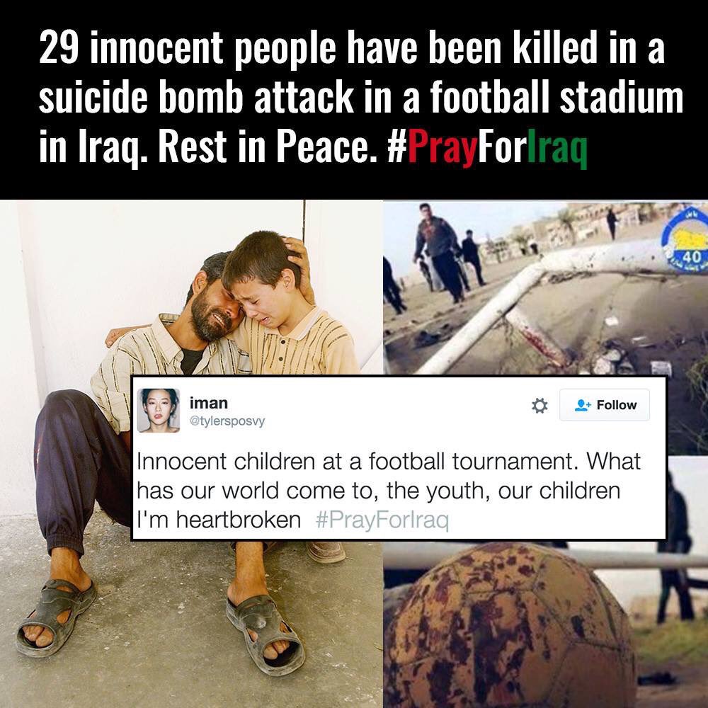 - EMINIK OFFICIAL and 7 others follow29 innocent people have been killed at a football stadium in Iraq..355 retweets254 likes