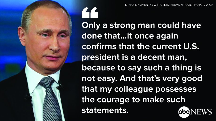 - Putin praises Pres. Obama for recognizing his administration had made mistakes in Libya. http://abcn.ws/1Nr2YEe95 retweets159 likes