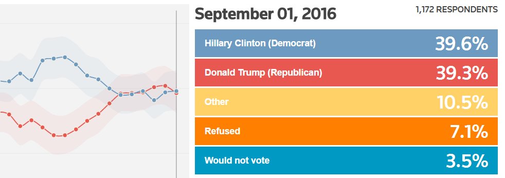 Reuters/Ipsos 📈 #Clinton 39.6 #Trump 39.3 #TrumpInDetroit #GoBlue #GameDay #earthquake