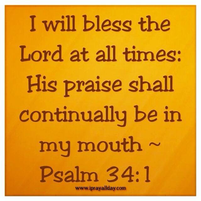 - I will bless the Lord at all times: His praise shall continually be in my mouth. Praise Him!