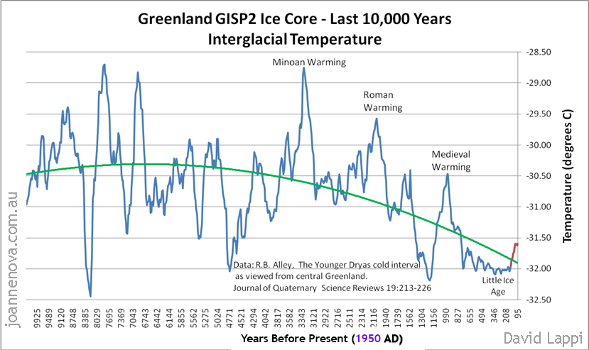 - Graph shows the Minoan Warming (3200 yrs ago), Roman Warming (2000 yrs ago), Medieval Warm (900 yrs ago). Great advances in warmer times.