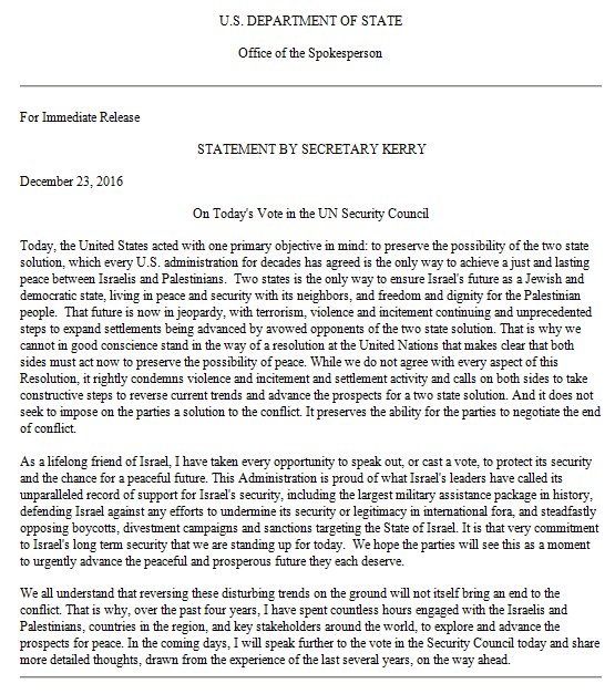 - Statement by @JohnKerry on today's vote in the @UN Security Council.
