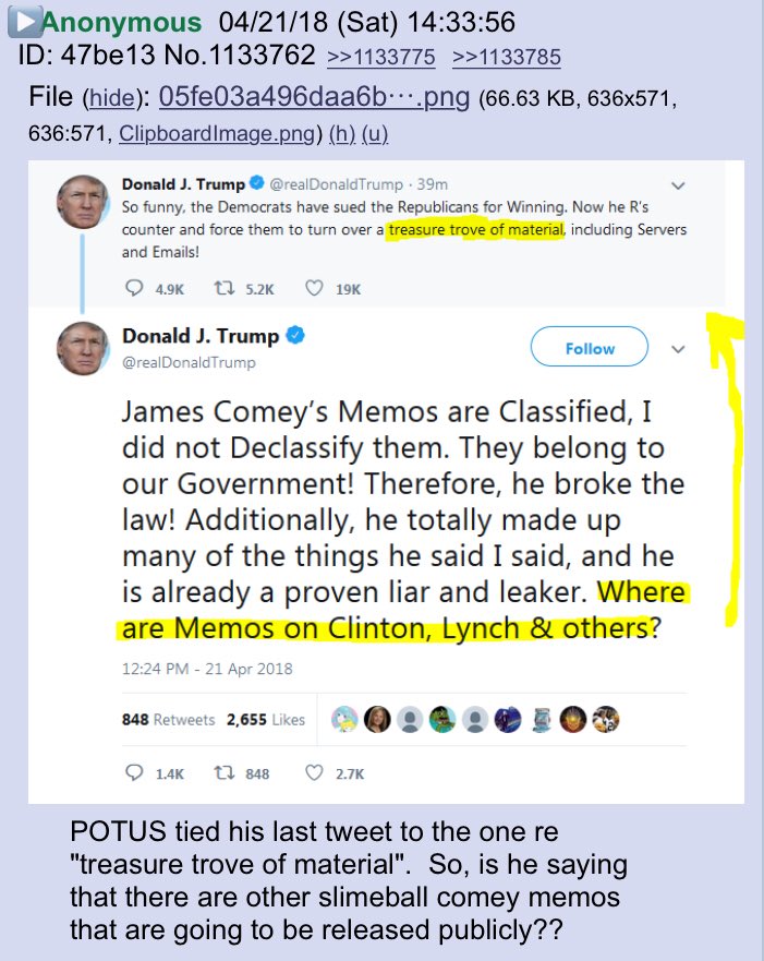 More Anon comments!! #MOABIncoming #Memembers #QAnon #AprilShowers of #Memes #2018WillBeGlorious #TrustThePlan @realDonaldTrump