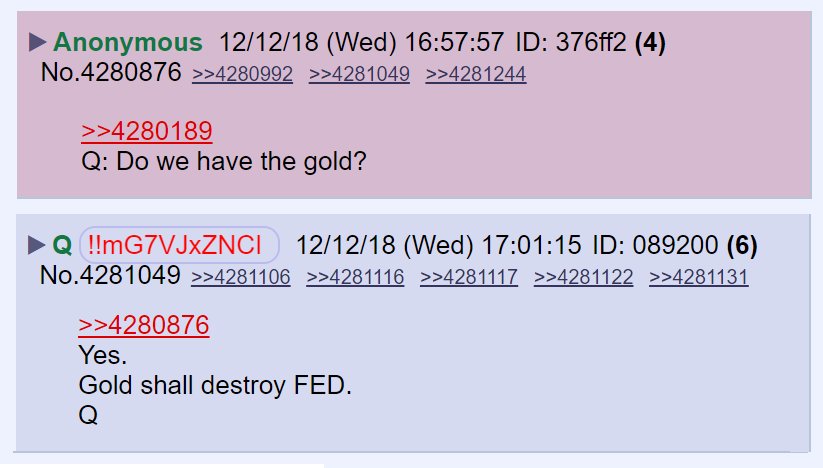 - 85) In his question and answer session a couple of weeks ago, Q didn't mince words. He said we have the gold it will destroy the Fed.31 replies171 retweets455 likes