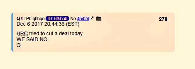 - (10) On December the 6th, the bomb: HRC attempts a deal that is rejected. #QAnon #TheStorm #GreatAwakening #AskTheQ @POTUS