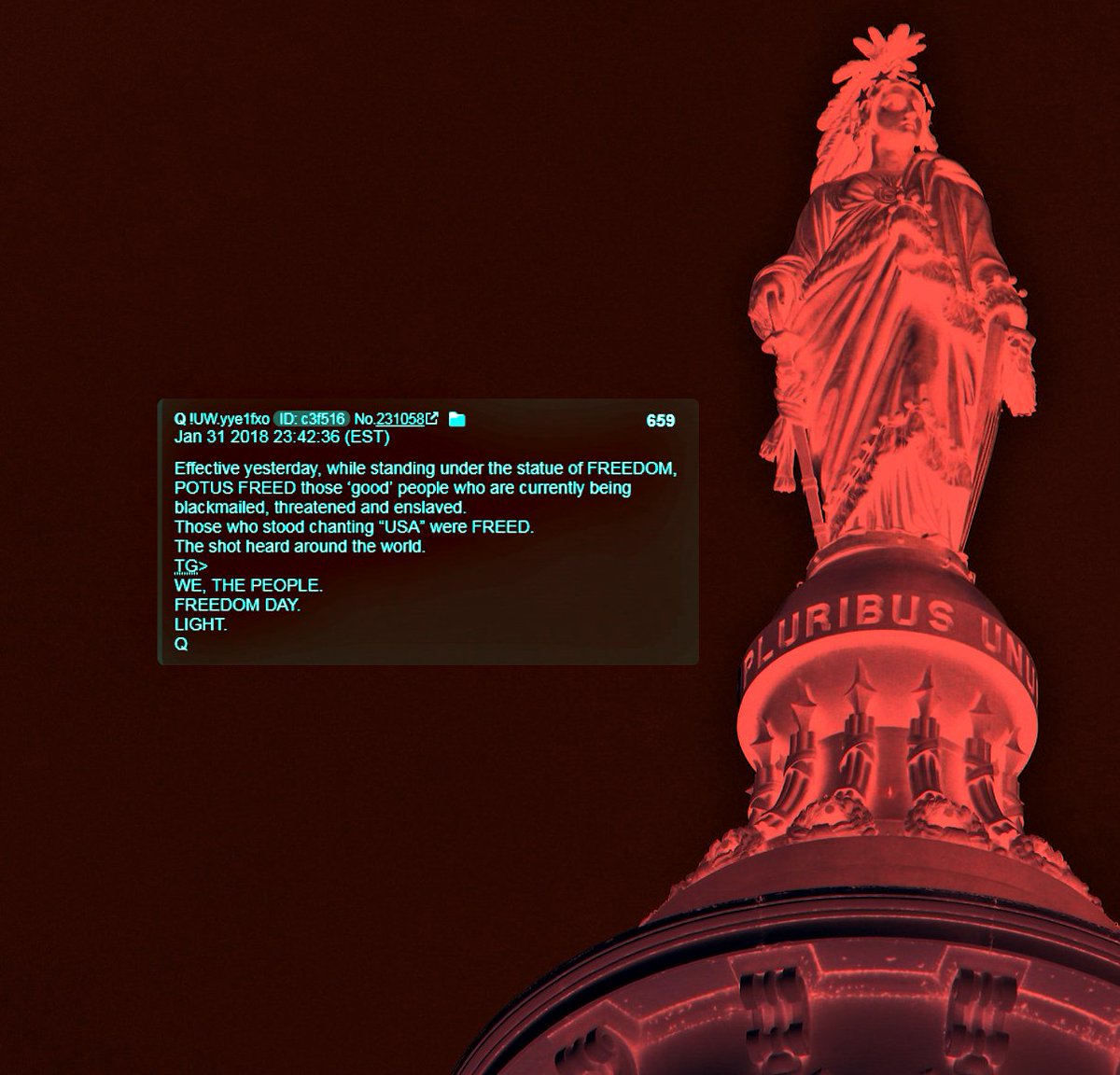 - (14) On the SOTU, POTUS freed those good people who were held hostage by the bad players. #QAnon #TheStorm #GreatAwakening #AskTheQ @POTUS