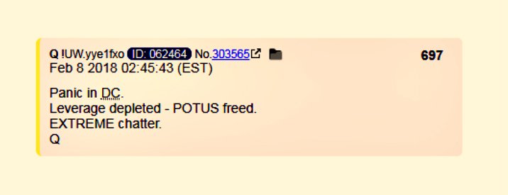 - (16) PANIC in DC. We learn that the leverage against POTUS has been depleted, and he is free. But what leverage? #QAnon #TheStorm #GreatAwakening #AskTheQ @POTUS