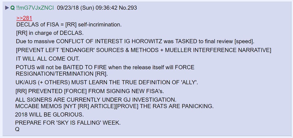 The Sky is Falling, the mere declassification of the Carter Page FISA application will expose Rod Rosenstein’s role in Spygate and force him to resign or recuse himself.