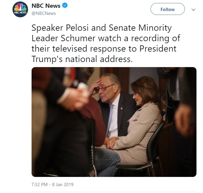 - Rosemary RetweetedOne thing is clear, everyone and I do mean everyone, including Nancy and Chuck, were uncomfortable with their response to @realDonaldTrump speech last night. That look of "Did I really say that and do you think anyone believed us?"